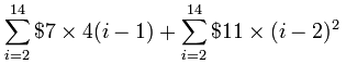 我们可以用其他的字母,以下我们用 i,把 i × (i+1) 加起来,从 1 到 3:
