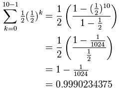 例子:把以下的等比数列的头 10 项加起来(每项是上一项的一半):